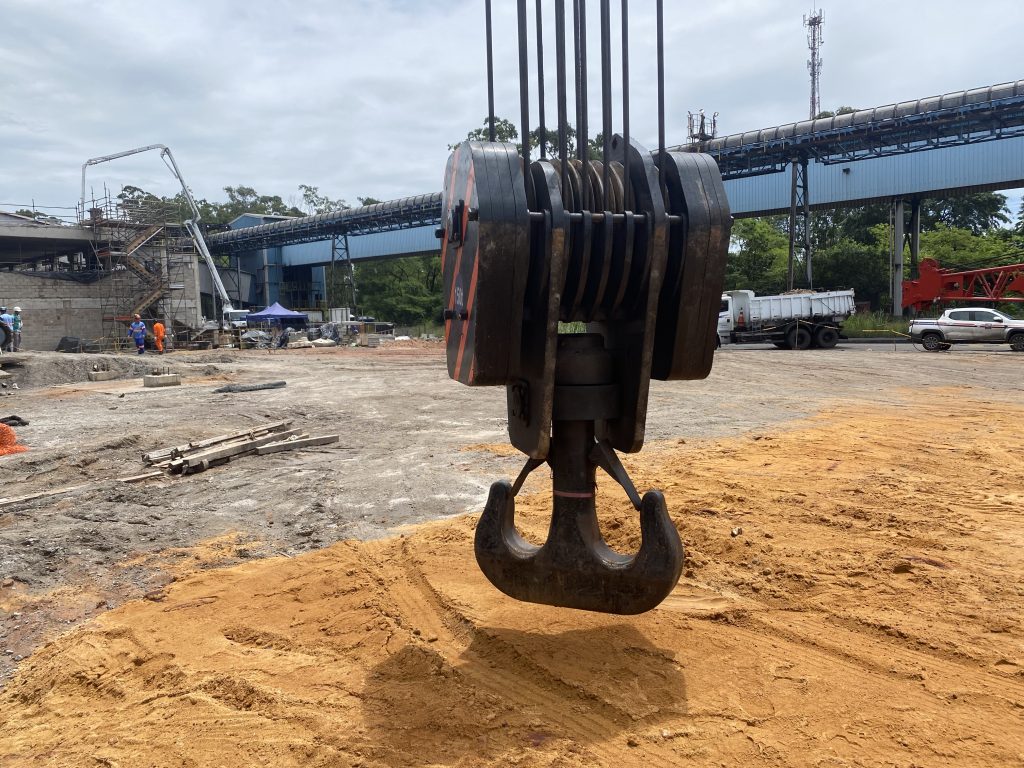 - Verificar se o peso do moitão é suficiente para manter o cabo com tração adequada para enrolamento no tambor, conforme manual de operação do guindaste.